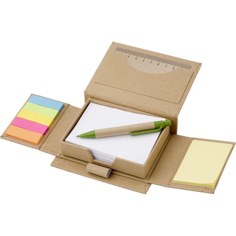 Das Haftnotizenset „Donna“ ist der perfekte Begleiter für den Büroalltag. Mit einem Memo-Halter inklusive Visitenkartenfach, einem Lineal im Deckel, 150 Haftnotizen und 160 leeren Blättern bietet es alles, was Sie für Ihre Notizen und Ideen benötigen. Der beiliegende Kugelschreiber rundet das Set ab. Praktisch, funktional und stilvoll – „Donna“ ist ein Must-Have für jeden Schreibtisch.