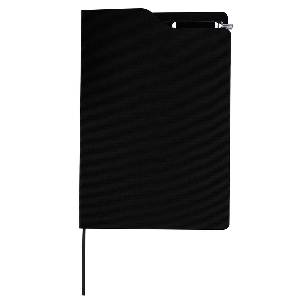 Das A5 Notizbuch mit Kugelschreiber ist der perfekte Imageträger für Ihre Marke. Mit seinen kompakten Maßen von 21,3 x 14,5 cm und elegantem Design in Schwarz bietet es nicht nur eine optimale Schreibfläche, sondern ist auch ein stilvolles Accessoire für den Alltag Ihrer Kunden. Dank hochwertigem RPET-Material fördern Sie Nachhaltigkeit und zeigen Ihr Engagement für die Umwelt.