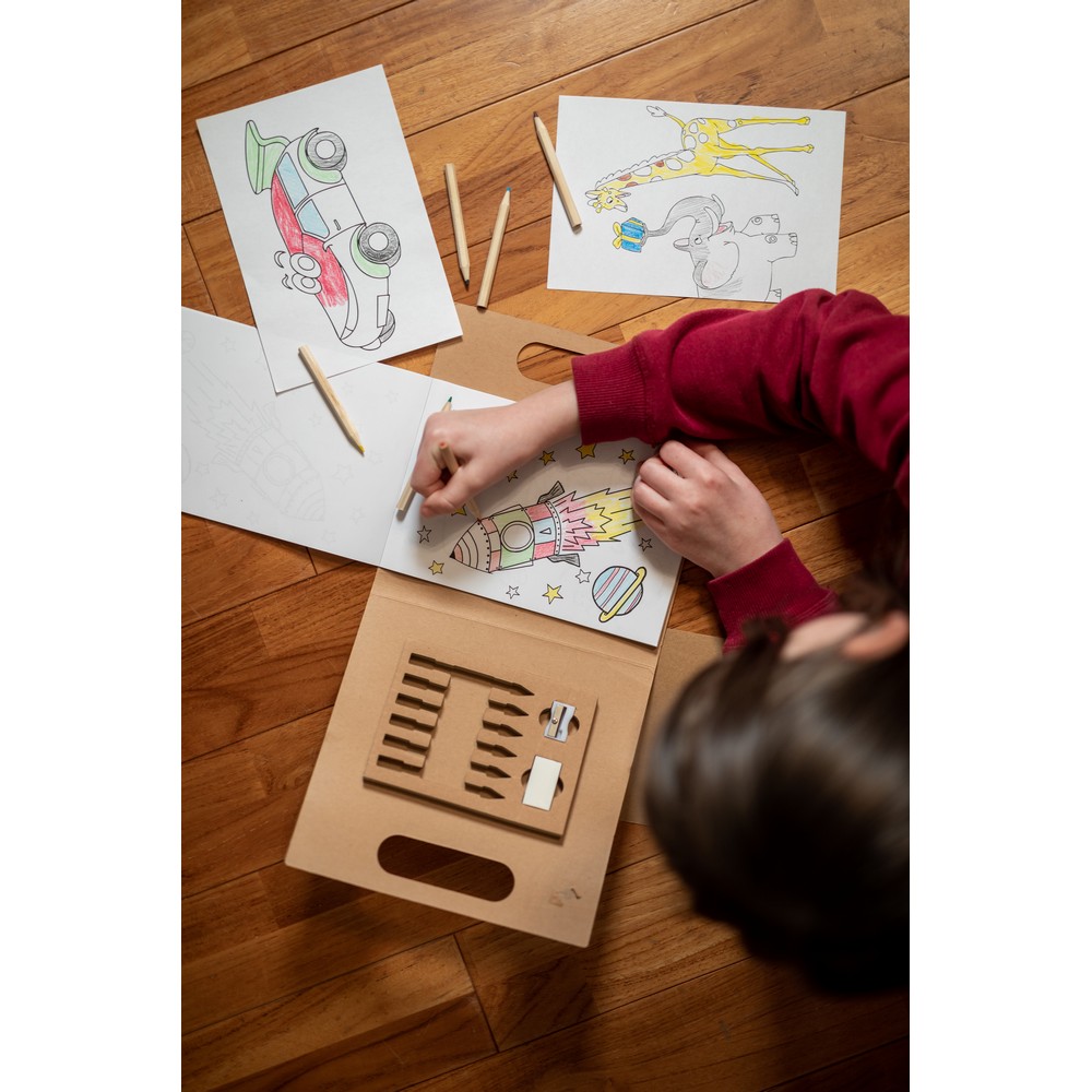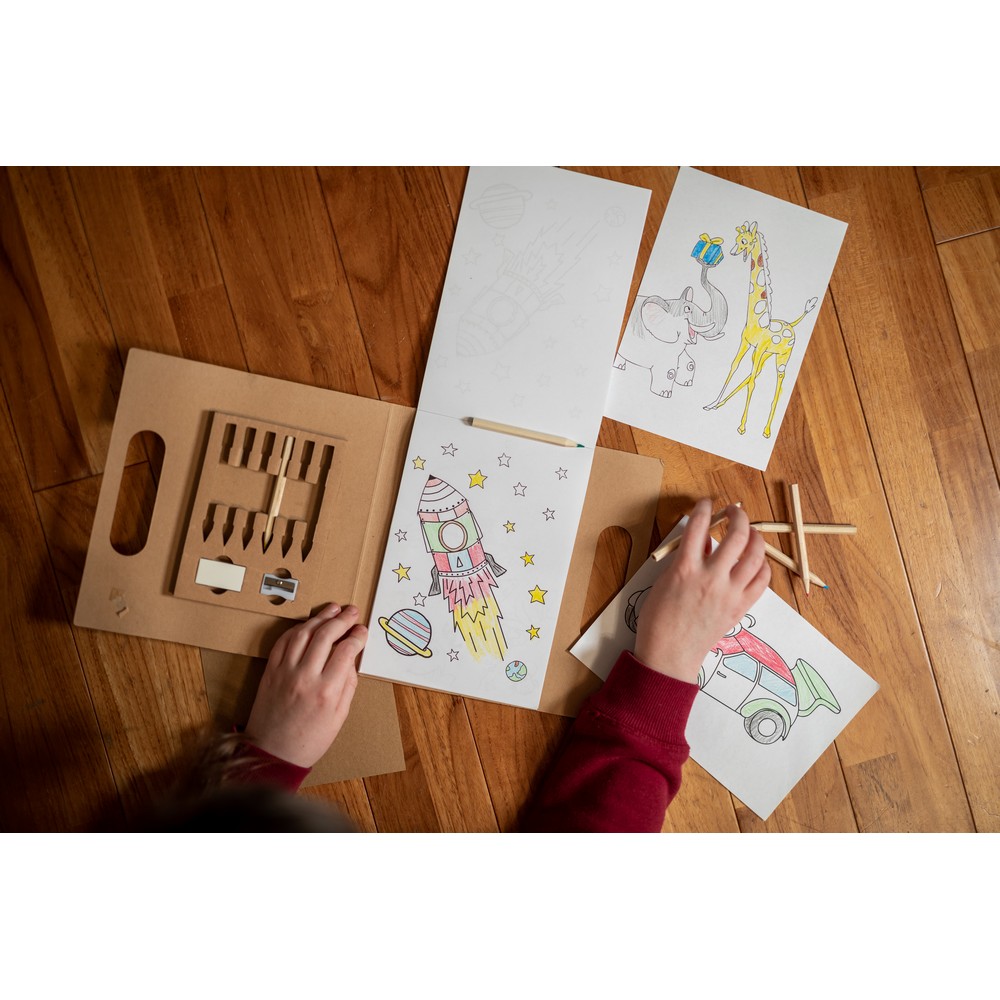 Erleben Sie mit unserem hochwertigen Zeichenset, dem idealen Werbeartikel für Ihre Marke, kreative Momente. Mit einem eleganten Design aus Holz und Papier bietet dieses Set nicht nur die Möglichkeit, die Fantasie zu entfachen, sondern auch Ihre Markenidentität zu stärken. Das Set enthält zehn verschiedene Malvorlagen, sechs bunte Buntstifte, einen Anspitzer und einen Radiergummi – alles, was nötig ist, um künstlerische Ideen zum Leben zu erwecken.